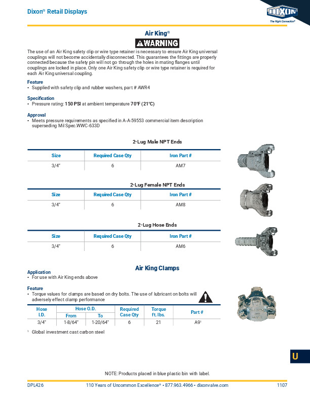 Air King meets pressure requirements as specified in A-A-59553 commercial item description superseding Mil Spec.WWC-633D.