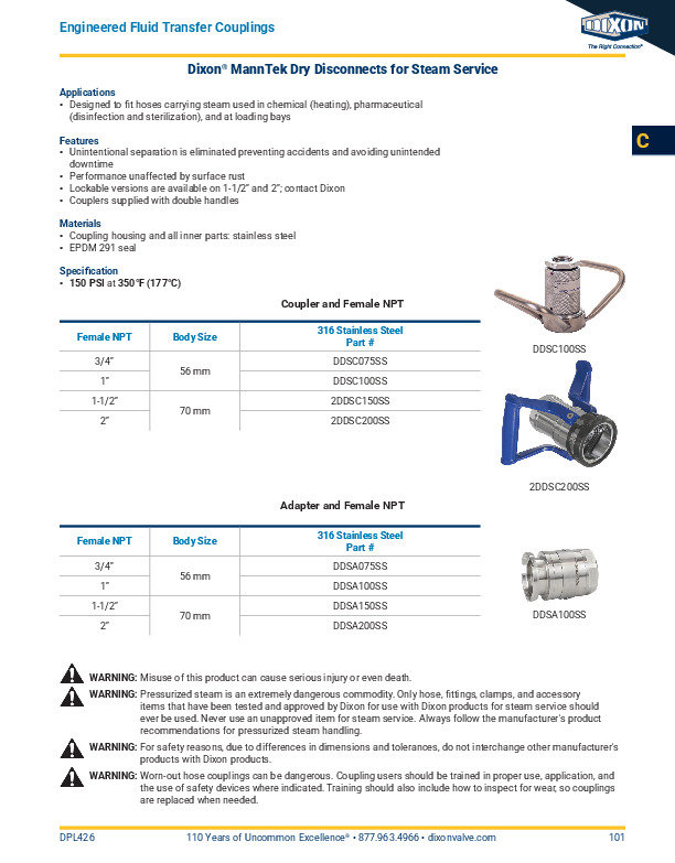 Note. Pressurized steam is an extremely dangerous commodity. Only hose, fittings, clamps and accessory items that have been approved for steam service should ever be used! Never use an unapproved item for steam service. Always follow the manufacturer's product recommendations for pressurized steam handling.