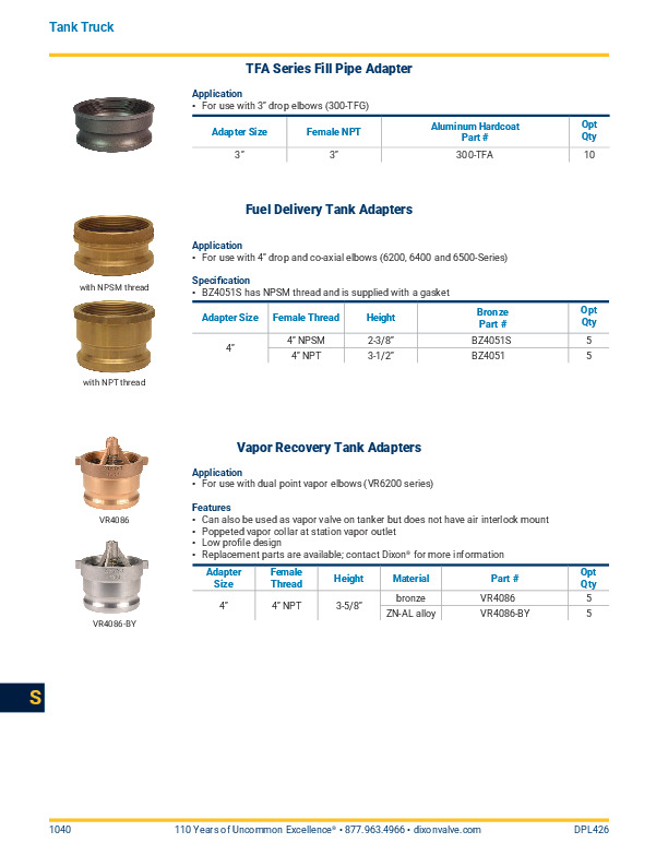When fuel is delivered to the fuel station, the fuel delivery and vapor recovery elbows, are connected to the in-ground tank adapters. The delivery adapter is threaded onto the in-ground tank fuel inlet.