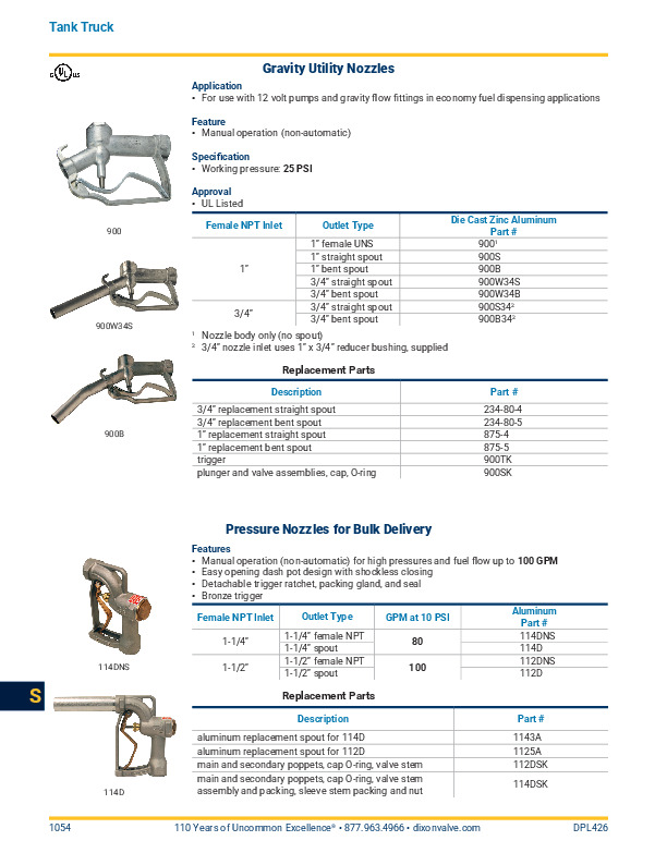 Brass spouts are optional, contact Dixon