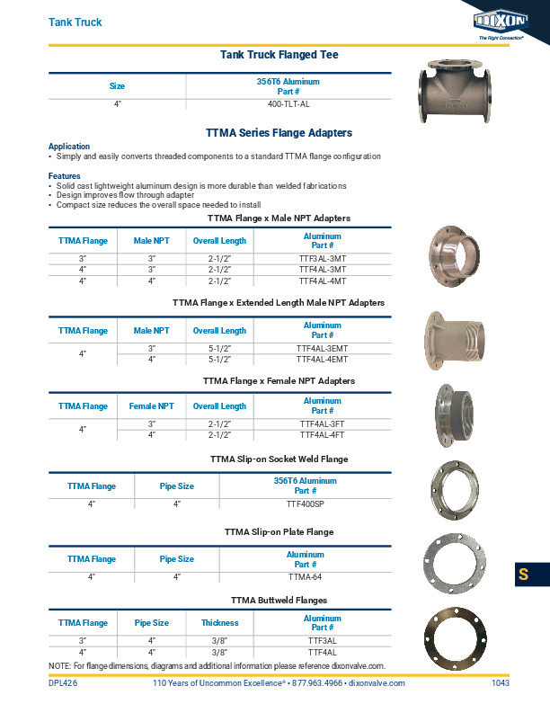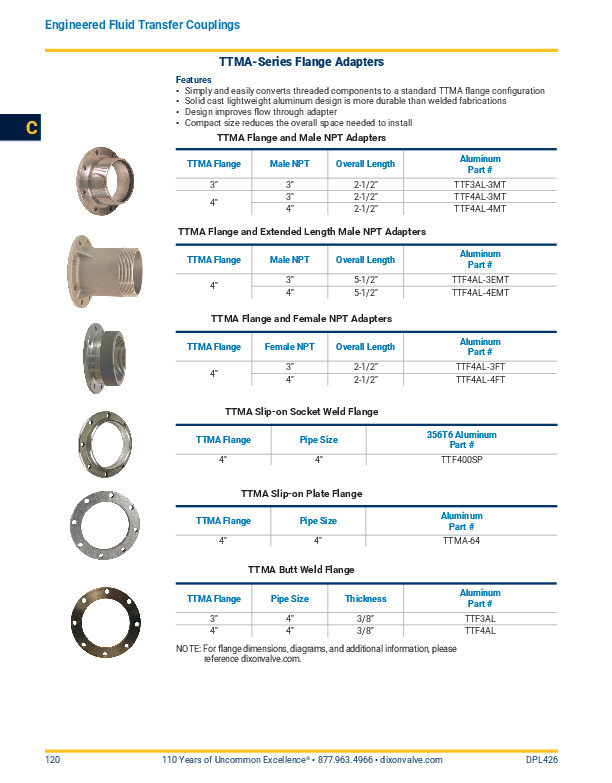Provides a simple and easy way to quickly convert threaded components to a standard TTMA flange configuration