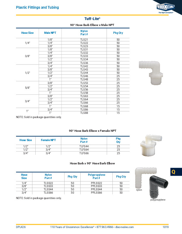 - Nylon fittings should not be used with acid-based fertilizers, bromine, chlorine, fluorine, hydrochloric acid, iodine, nitric acid, phosphoric acid, sulfuric acid or xylene.