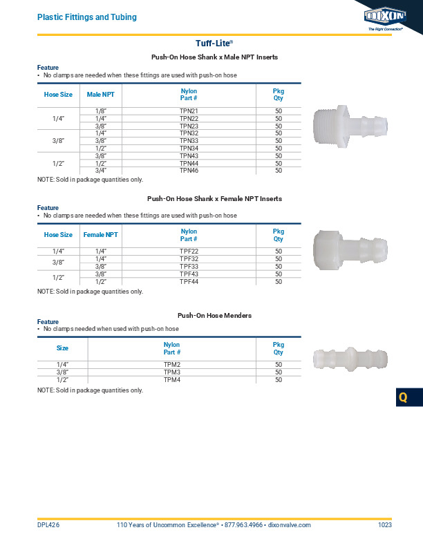 - Nylon fittings should not be used with acid-based fertilizers, bromine, chlorine, fluorine, hydrochloric acid, iodine, nitric acid, phosphoric acid, sulfuric acid or xylene.
