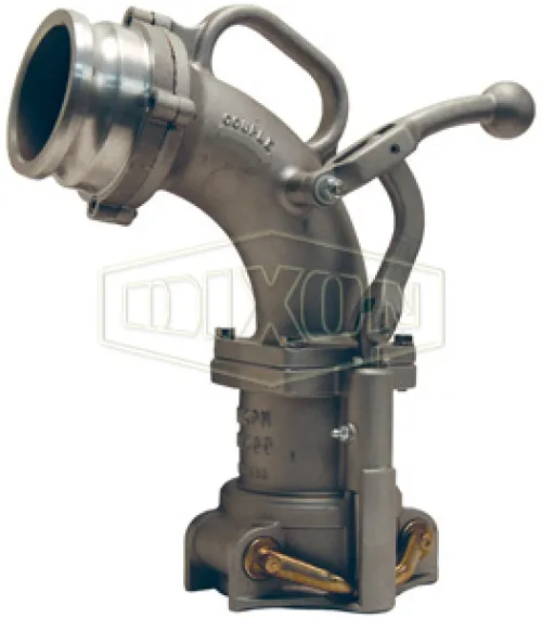 In many areas fuel stations are equipped with dual point tank connections, one connection is for the fuel delivery, and the other connection is for the vapor recovery connection. The vapor elbow bottom connection is connected to the fuel station on a ground tank vapor adapter and the top connection to the vapor hose, which returns the fuel vapors back to the tanker.