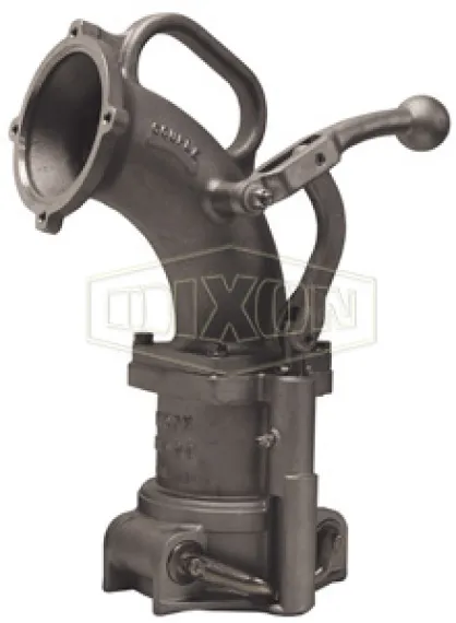 In many areas fuel stations are equipped with dual point tank connections, one connection is for the fuel delivery, and the other connection is for the vapor recovery connection. The vapor elbow bottom connection is connected to the fuel station on a ground tank vapor adapter and the top connection to the vapor hose, which returns the fuel vapors back to the tanker.